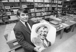 Image shows Charles Colley, director of Special Collections at UTA Library. He is holding up a recently acquired photo of Will Rogers. Published in Fort Worth Star-Telegram evening edition April 2, 1985.