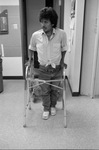 At the Day Enrichment Center in Arlington, 600 New York Street, unidentified man enters the facility for physical, occupational. In the photo the man is seen on a walker to support himself.