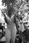 Billie Patterson claps and sings along to Vernard Johnson's musical performance during gospel hour at the annual Juneteenth celebration in Sycamore Park in Fort Worth.