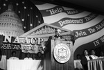 Benjamin L. Hooks delivers keynote address at a podium. This picture was taken at the 76th annual National Association for the Advancement of Colored People, (N. A. A. C. P.), National Convention in Dallas, Texas.