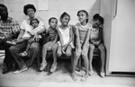 Image shows from left to right James Beck Jr., 3, fourth from left, and his sisters Chairmane, 5, Sharae, 8 and Ebony, 6, apprehensive as they wait for diphtheria pertussis tetanus shots Wednesday at Bethlehem Community Center. The South Side center offers free physical exams and vaccinations for children based upon financial needs. Published in Fort Worth Star-Telegram evening edition August 15, 1985.