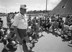 University of Texas at Arlington football coach Chuck Curtis with his team after practice at Maverick Stadium.