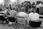 Wrestler Mike Von Erich [Mike Adkisson] contracted toxic shock syndrome and was admitted to Baylor University Medical Center in Dallas. A news conference was held at the hospital with, from left, Kevin Von Erich [Kevin Adkisson], Dr. William Sutker, and Mike and Kerry Von Erich [Mike Adkisson, Kerry Adkisson]. Members of the press are seen in the background.