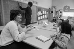 Student Amanda Oei watches deaf interpreter Paula Golem sign what teacher Barbara Macintosih is telling the class at Eastern Hills Elementary School, Fort Worth, 11/06/1985