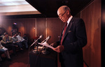 University of Texas at Arlington President W.H. Nedderman reads statement on discontinuing football program, 11/26/1985