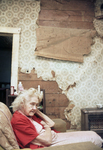 Image shows Ruth Walker, seated on couch in her home that she wants to leave. This home is one of the crumbling homes that fall upon 18 home inspectors. Published in Fort Worth Star-Telegram morning edition December 1, 1985.