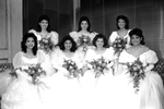 The Hispanic Debutante Association presented seven women. the debutantes are, front row, left to right: Linda Villanueva, Christina Garcia, Wendy Herndon and Rebecca Jimenez. Back row, left to right: Jo Ann Munoz, Nora Santana and Tim Guild. Published in Fort Worth Star-Telegram evening edition February 17, 1986.
