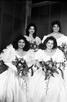Image of Hispanic Debutantes from left to right; standing: Linda Villanueva and Rebecca Jimenez. Sitting; left to right: Christina Garcia and Wendy Herndon. Published in Fort Worth Star-Telegram morning edition February 17, 1986.