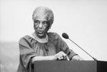 Lenora Rolla, Executive Director of the Tarrant County Black Historical and Genealogical Society, speaking at a Fort Worth School Board meeting. The meeting was called to vote on a proposal to sell the James E. Guinn school building, which the Board ultimately voted not to sell. The Guinn school, currently occupied by the Presbyterian Night Shelter, furnishes shelter for 200-300 homeless people each night.