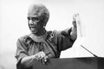 Lenora Rolla, Executive Director of the Tarrant County Black Historical and Genealogical Society, speaking at a Fort Worth School Board meeting. The meeting was called to vote on a proposal to sell the James E. Guinn school building, which the Board ultimately voted not to sell. The Guinn school, currently occupied by the Presbyterian Night Shelter, furnishes shelter for 200-300 homeless people each night.