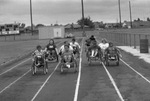 Members of the Texas Rollers (Southwest Wheelchair Athletic Association) practice racing in preparation for competition in the Junior National Wheelchair Games in June, 05/28/1986