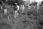 Members of the Near Southeast Citizens Committee Inc. examine damage at the community garden at the corner of New York Avenue and East Myrtle Street, Fort Worth, Texas. Members include, from left, L. T. Stewart, Joe Echols, Dottie Sims, Moses Brown, Ophelia Furlow, and Calvin Littlejohn.