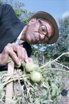 Calvin Littlejohn examines damaged tomatoes at the Near Southeast Citizens Committee Inc. community garden at the corner of New York Avenue and East Myrtle Street, Fort Worth, Texas.