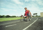 Robbie Harville, 15-year-old sophomore from L.D. Bell High School, Hurst, was born with spina bifida which paralyzed him below the waist; he will compete in the Junior National Wheelchair track games in Valley Forge, Pennsylvania, 06/23/1986