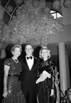 Debutante party given by Ben and Kay Fortson at River Crest Country Club for sisters Windi Phillips and Mary Sowell; from left, Anne Sowell, Ben Fortson, and Kay Fortson, 06/29/1986. Behind them , there is a bundle of balloons attached to an upper window