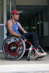 Andy Beck, handicapped student at University of Texas at Arlington, who has found help at the Arlington Handicapped Association and wants to increase accessibility for the disabled at the UTA campus, 08/11/1986
