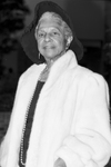 Image shows Lenora Rollins wearing a fur coat at a celebrity Stroll benefiting the Sojourner Truth Players at the Center Stage America Club. Hilton Hotel in Fort Worth. Published in Fort Worth Star-Telegram morning edition August 27, 1986.