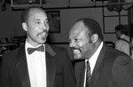 Image shows Curtis Neal, left and unidentified person on right at a celebrity Stroll benefiting the Sojourner Truth Players at the Center Stage America Club. Hilton Hotel in Fort Worth. Published in Fort Worth Star-Telegram morning edition August 27, 1986.