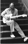 Cornell Dupree with a guitar and holding a pipe in his mouth.
