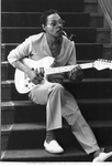 Cornell Dupree with a guitar and holding a pipe in his mouth.