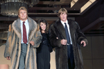 Lance Von Erich [William Kevin Vaughan], left, and Kevin Von Erich [Kevin Adkisson] escort Kevin's wife, Pam, down the runway during the "All Sports Celebrity Fashion Show" benefiting the Cystic Fibrosis Foundation at the Hyatt Regency Hotel in Dallas. The fashion show featured the wives of Dallas Mavericks, Dallas Cowboys, Texas Rangers, and Dallas Sidekicks with cameo appearances by professional athletes and sports personalities.