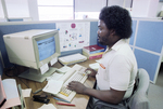 Fort Worth Star-Telegram employee working at a computer at the new Fort Worth Star-Telegram Printing and Distribution Center.
