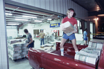 Fort Worth Star-Telegram employees loading newspapers into a red pickup truck for delivery at the Fort Worth Star-Telegram Printing and Distribution Center.