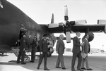 Fort Worth City Manager Doug Harman, right, and Fort Worth Mayor Bob Bolen lead the way after their ride on a new Texas Air National Guard C-130 transport plane. The plane was christened "The City of Fort Worth" during the dedication ceremony at Hensley Field in Grand Prairie. Other passengers were City Councilman William Garrison and Maj. Susan Bickelman.