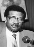 Image shows a shot of Fort Worth City Council Member Bert Williams, he is shown seated and at microphone.