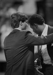 University of Texas at Arlington (UTA) vs. North Texas State University (NTSU) Game. Image is of Coach Bob "Snake" LeGrand as he coaches his last game. The Mavericks lost, 97-83. Published in Fort Worth Star-Telegram morning edition March 1, 1987.