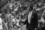 University of Texas at Arlington (UTA) vs. North Texas State University (NTSU) Game. Image is of Coach Bob "Snake" LeGrand as he coaches his last game. The Mavericks lost, 97-83. Published in Fort Worth Star-Telegram morning edition March 1, 1987.