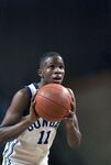 A Dunbar High School basketball player is seen preparing to take a shot with the ball during the Region I tournament basketball game, held in Midland, Texas, against Amarillo High School.
