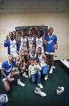 The Dunbar High School basketball team pictured with a trophy after winning the Region I tournament, held in Midland, Texas, against Amarillo High School.