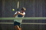 UT-Arlington's (University of Texas at Arlington) Mat Bilardi hits a shot against Lewis and Clark's Arvind Aravindham. Aravindha won, 2-6, 6-3, 6-1. Published in Fort Worth Star-Telegram morning edition March 12, 1987.