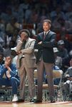Dunbar High School head basketball coach Robert Hughes, right, stands with assistant coach Leondas Rambo on the sideline during the Class 5A state championship basketball game, held in Austin, Texas, against San Antonio's Oliver Wendell Holmes High School.