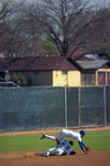 UT-Arlington's (University of Texas at Arlington) third baseman Pat Varni (9) collides with shortstop Stephen Hodge as Hodge caught a ground ball during the game. Published in Fort Worth Star-Telegram morning edition March 25, 1987.