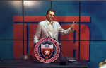 Image shows new University of Texas at Arlington's (UTA) basketball coach, Jerry Stone, mid response to a question. "I'm spoiled; I'm used to winning, and I don't want to change that." Published in Fort Worth Star-Telegram morning edition March 31, 1987.