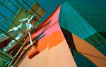 Ralph Van Noy repainting Alexander Calder's sculpture, "The Eagle," in front of the Texas American Bank building, Fort Worth, Texas, April 15, 1987.