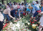 Fans are seen placing flowers at Mike Von Erich [Mike Adkisson]'s gravesite at Grove Hill Memorial Park in Dallas during his funeral.