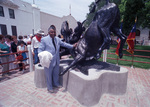 Unveiling ceremony of the Bill Pickett statue in stockyards; Algia Pickett, second cousin to Bill Pickett, stands next to the statue.