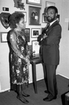 The Tarrant County Black Historical and Genealogical Society and the Fort Worth Association of the Federated Women's Clubs held a gala opening reception for the traveling exhibition "They Showed the Way," organized by the Museum of African American Life & Culture, featuring 125 Black Texas women who are leaders in various fields. Eleanor Jones, left, and Harry Robinson are pictured here in attendance of the event. The clipping reads "Of the 125 women honored in the exhibition, four -- Kathryn Edwards, Lucille B. Smith, Maudrie Walton, and Lenora Rolla -- are from Fort Worth. Eleven others -- Arquilla Gardner, Francine Morrison, Judge Maryellen Hicks, Jimi Burns, Bertha Collins, Viola Pitts, Bessie Munson Williams, Irreasa Drake, Gladiola Swancy, Mary F. Blanche, and Vada P. Felder -- are being recognized for Tarrant County community, business, or educational leadership... Fort Worth school board member Maudrie Walton and historian Lenora Rolla, both in elegant evening gowns, exchanged mock curtsies and mutual congratulations. Mary F. Blanche recalled her 32-year career as a teacher at I.M. Terrell High School, while Francine R. Morrison claimed surprise at her selection as an honoree." Published in the Fort Worth Star-Telegram, August 26, 1987.