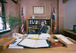 Lee Jackson, Dallas County Judge in his office at the Texas School Book Depository Building in Dallas. Jackson proposed a Sixth-Floor Exhibit to commemorate the twenty-fifth anniversary of John F. Kennedy’s assassination.