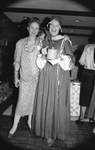 Image shows Jo-Anne Harris, left and Mary Perry, right dressed in colonial dress at a University lecture series brunch, hosted at Betty Nedderman's home . They are introducing a UTA lecture series "Pioneering Women; Petticoats and Pride". Published in Fort Worth Star-Telegram morning edition September 30, 1987.