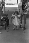 An unidentified child with crutches attends Fort Worth's Shulkey School which offers a handicapped program, 10/07/1987