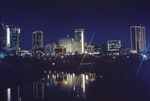Skyline of Fort Worth downtown buildings with Christmas lights outlining the buildings.