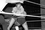 Wrestling match between Al Perez, right, and Kevin Von Erich [Kevin Adkisson] at Will Rogers Coliseum, Fort Worth, Texas.