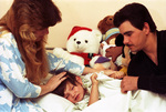 Sharon and Jerry Davis with their 2-year-old son Joshua who has cancer and is recovering from chemotherapy session, 12/27/1987
