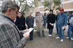 University of Texas at Arlington memorial service for people with AIDS who have died; UTA campus minister Skip Hughes reads scripture to the group attending.