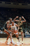 A Dunbar High School basketball player is seen with the ball during the Class 5A state championship basketball game, held in Austin, Texas, against Houston's Sam Houston High School.