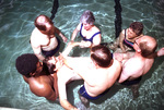 Dennis Robbins is assisted with his aquatic exercises in the Carter Rehabilitation Center pool; members of Multiple Sclerosis Association board helped volunteers work with patients, 03/30/1988